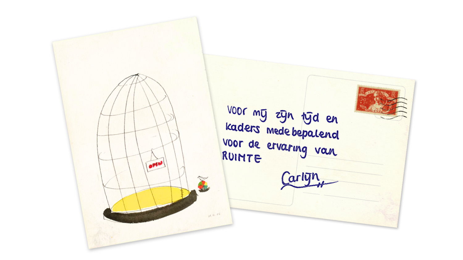 Er zijn twee beelden die direct bij mij naar boven komen zodra ik denk aan ‘ruimte’. Het ene beeld is van een vogelkooi waarvan het deurtje open staat en de vogel in de kooi zit. Het andere beeld is van een vogelkooi waarvan het deurtje open staat en de vogel buiten de kooi zit. Beide beelden associeer ik met ruimte en verbeelden precies waar ik ook de spanning ervaar van ruimte. Ik zal het toelichten, aan de hand van twee situaties.